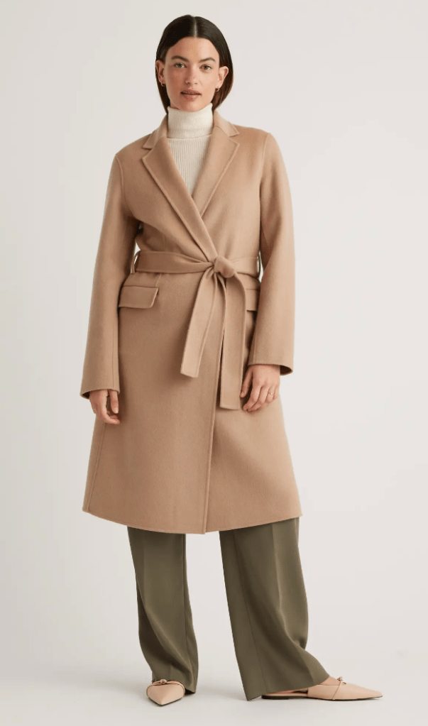 Quince’s 100% Mongolian Cashmere Double-Faced Wrap Coat ($499)