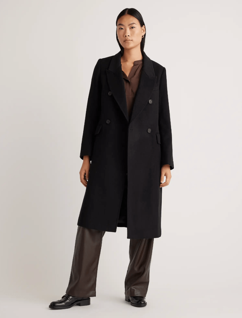 Above – Quince Italian Wool Double-Breasted Coat ($189.90)