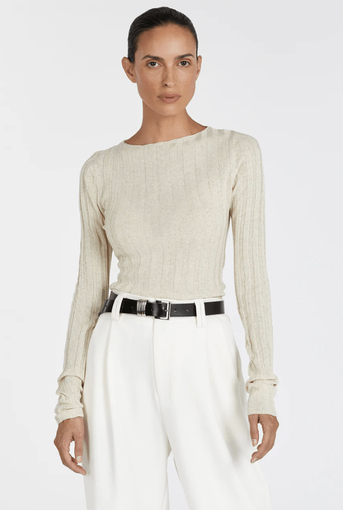 Above – Dissh Goldie Natural Long Sleeve Top ($99.99)