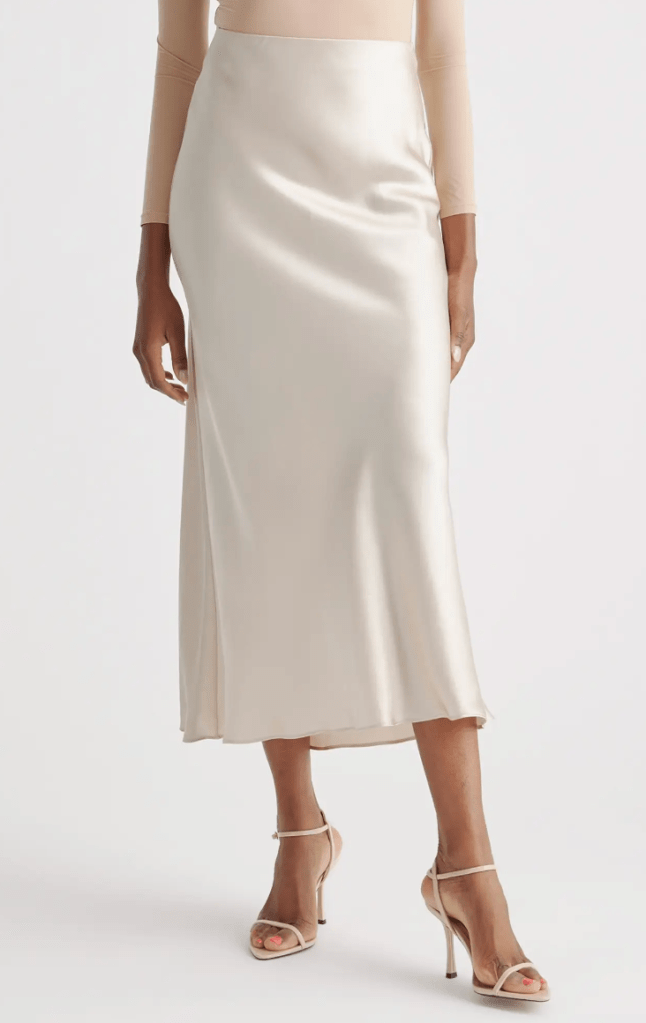 Slip skirts: a must to have if you are looking for elegance and luxurious comfort. I have been using more skirts than ever after I got myself a few midi and maxi slip skirts since last year. I have been amazed by the amount of outfits I can pull from only one skirt. I will make a post exclusively on this later this month. Slip skirts (either made of satin or silk, or blended materials) effortlessly blend sophistication with versatility. I love how smooth the material is is the lustrous texture they have. You can style it for a formal occasion or a casual outing. Pair them with a crisp blouse and heels for an elevated evening ensemble, or opt for a cozy sweater and sneakers for a relaxed yet refined daytime look. Images below are links to the references (they come in multiple colors as well!)