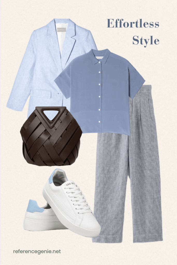 Blouse • Blazer • Linen Pants • Leather Bag • Sneakers