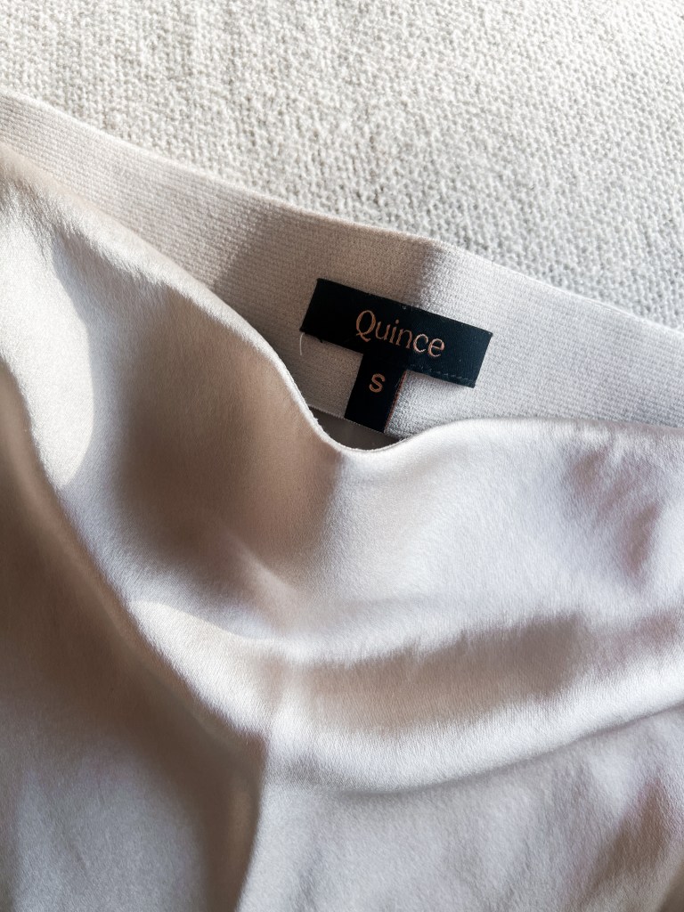 In today’s post we will explore the timeless sophistication of Quince’s mulberry silk slip skirt. For those new to the brand – Quince is renowned for its commitment to quality, sustainability, and effortless style. At the heart of Quince’s collection lies their iconic slip skirts – versatile pieces that seamlessly blend comfort and chic. In this blog post, we’ll take a closer look at the signature slip skirts, exploring their craftsmanship and how you, my dear reader, can use this versatile piece in multiple ways. Join us as we delve into the allure of Quince’s slip skirts and discover how these timeless pieces can elevate your wardrobe with elegance and ease. If you haven’t read yet, here is the story behind the brand and how I found out about them!